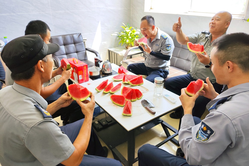 在活动现场,广青科技党委副书记、工会主席王大庆代表公司为一线职工送上清凉饮料、西瓜、冰棍、解暑药品等防暑降温物品,并向一线职工战高温、斗酷暑的辛勤劳动表示慰问,感谢他们的辛勤付出,叮嘱大家注意劳逸结合,提高安全意识,加强安全防护措施,确保生产、安全两不误,为高标准完成各项生产任务保驾护航。