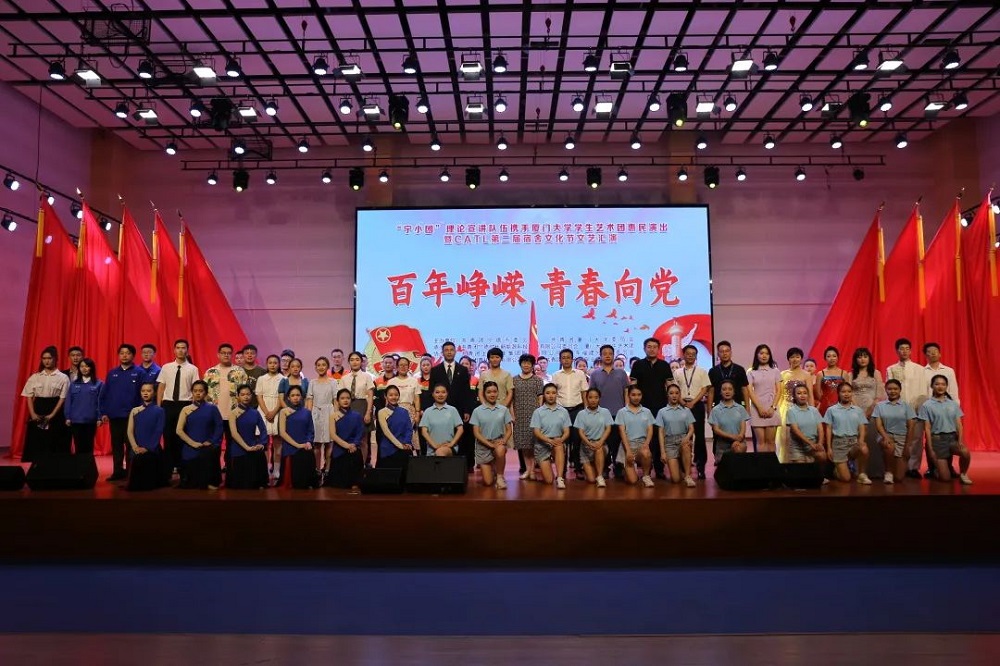 7月21日晚,青拓集团有限公司作为宁德市四大产业企业代表参加了“宁小团”理论宣讲队伍携手厦门大学学生艺术团举行的“百年峥嵘 青春向党”庆祝中国共产党成立100周年专场演出。