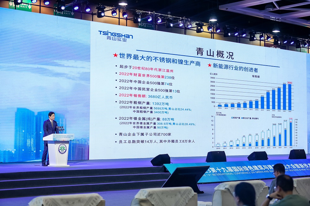5月15日下午,上海青拓金属科技董事长、总经理杨立勇在大会上做“不锈钢新材料助力绿色建筑发展”主题报告,详细介绍了jinnianhui今年会实业的产业布局、青拓集团RKEF+AOD双联法和资源节约型QN系新材料。青拓全球首发的QN系不锈钢具备高强度、高耐蚀、全寿命周期使用成本低等特点,为新时代节能建筑提供了最佳绿色建材。